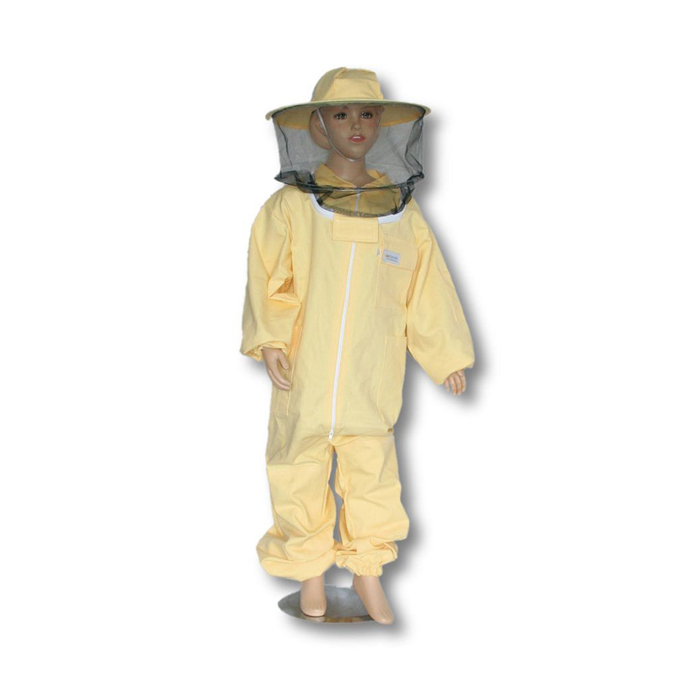 Dziecięcy kombinezon pszczelarski zintegrowany z kapeluszem, zapinany na wygodny zamek, chroni przed przypadkowym użądleniem podczas pracy przy ulach. Idealny podczas wspólnej zabawy, nauki i pierwszych kroków w pszczelarstwie dla dzieci w wieku szkolnym.