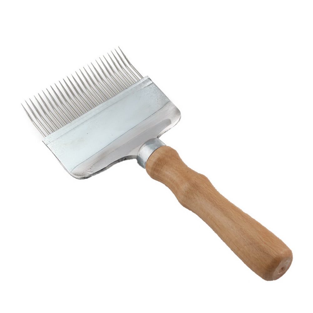 Odsklepiacz widelcowy – łopatka aluminiowa polerowana, trzonek drewniany, igły wykonane ze stali nierdzewnej.